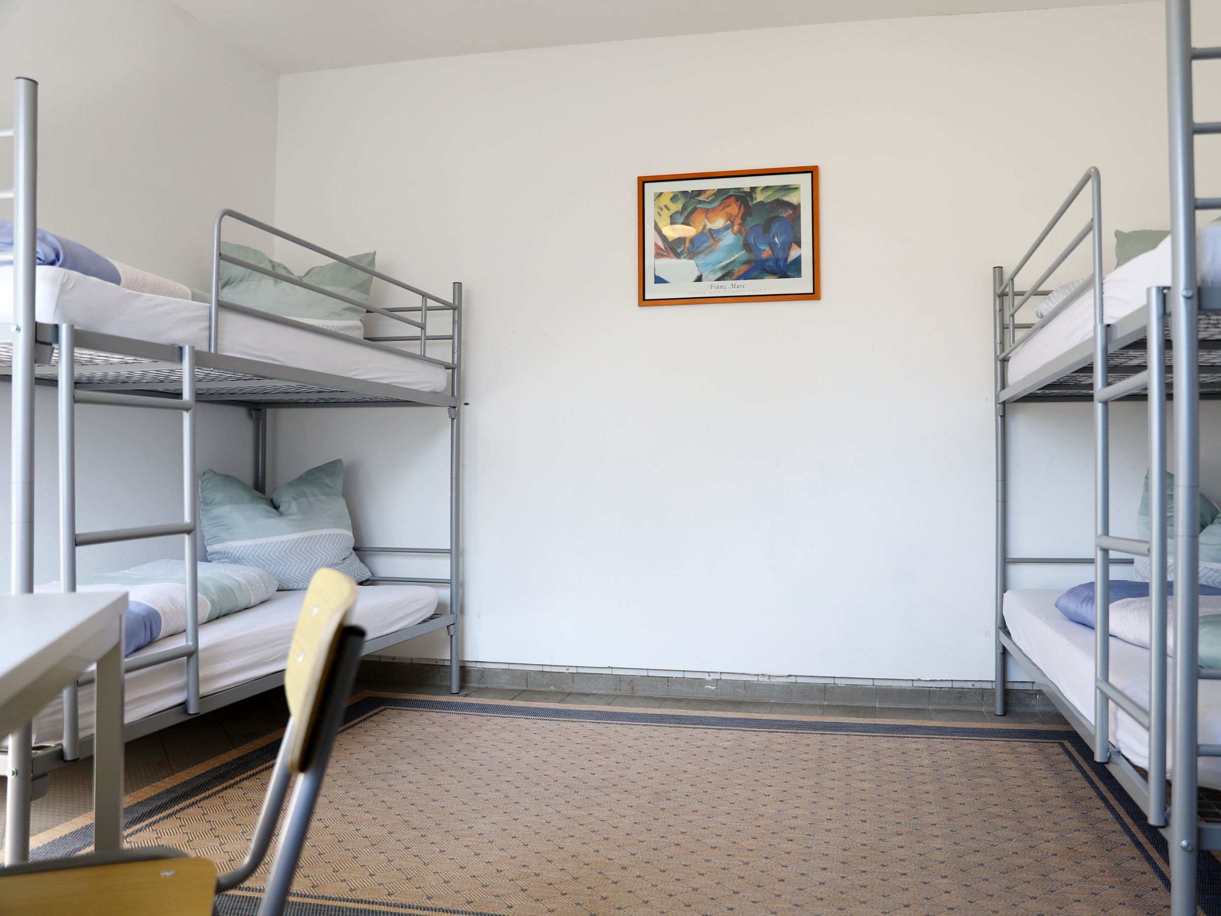 3 Stockbetten mit insgesamt 6 Schlafplätzen, 6 Spinde mit Münzschloß und Münzrückgabe, Tisch mit 2 Stühlen